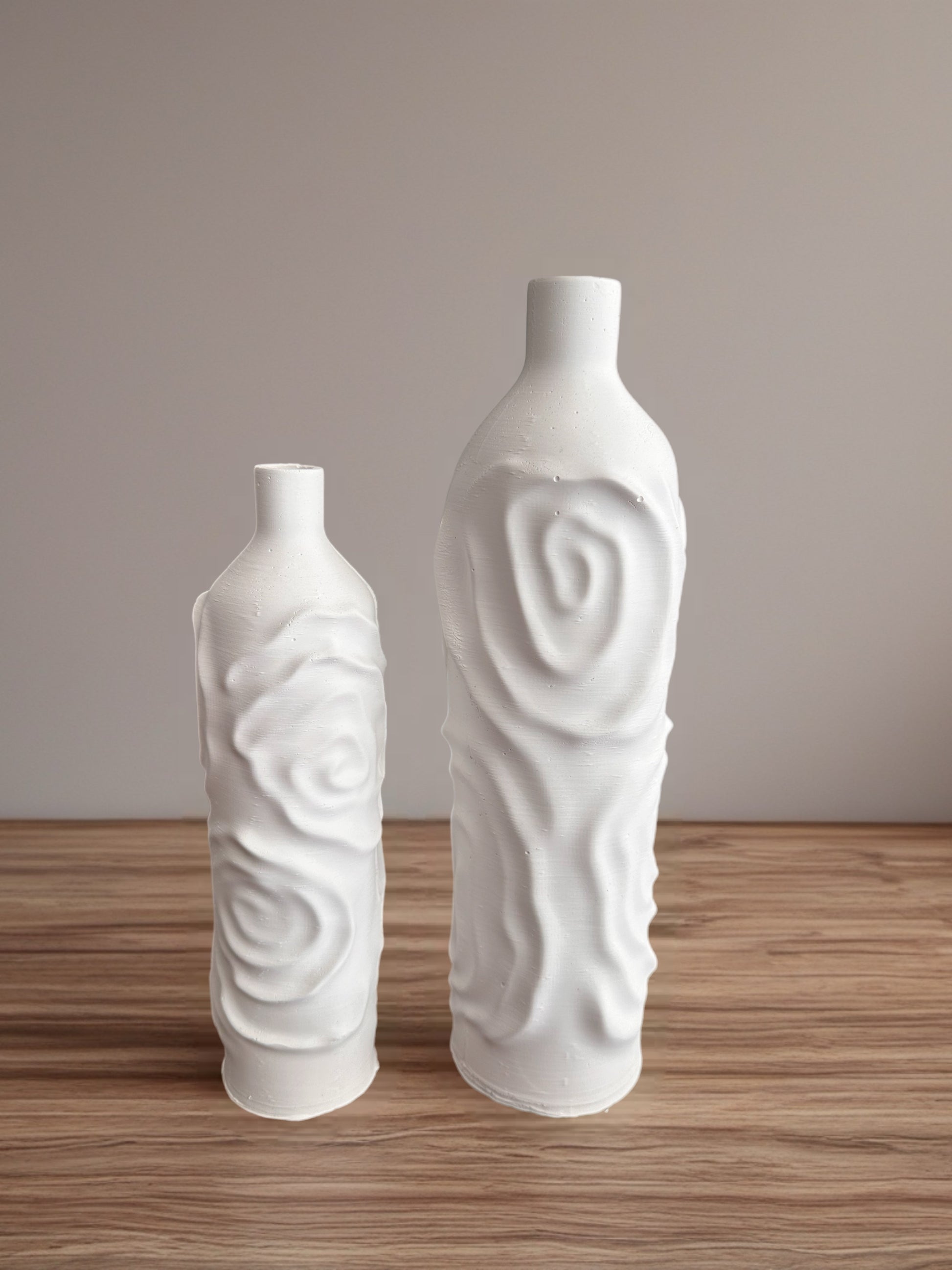Organik dokusu ve dikkat çekici kıvrımlı yüzeyiyle öne çıkan 2’li Set Radial Şişe Beton Vazo, modern dekorasyonun vazgeçilmez parçalarından biridir. %100 el yapımı olan bu özel set, taş tozu içerikli beton karışımıyla üretilmiştir. Sağlam ve dayanıklı yapısı sayesinde uzun ömürlüdür. İki farklı boy seçeneğiyle birlikte sunulan bu set, tek başına dekoratif bir obje olarak kullanılabileceği gibi çiçek aranjmanlarını da estetik bir şekilde sergiler.