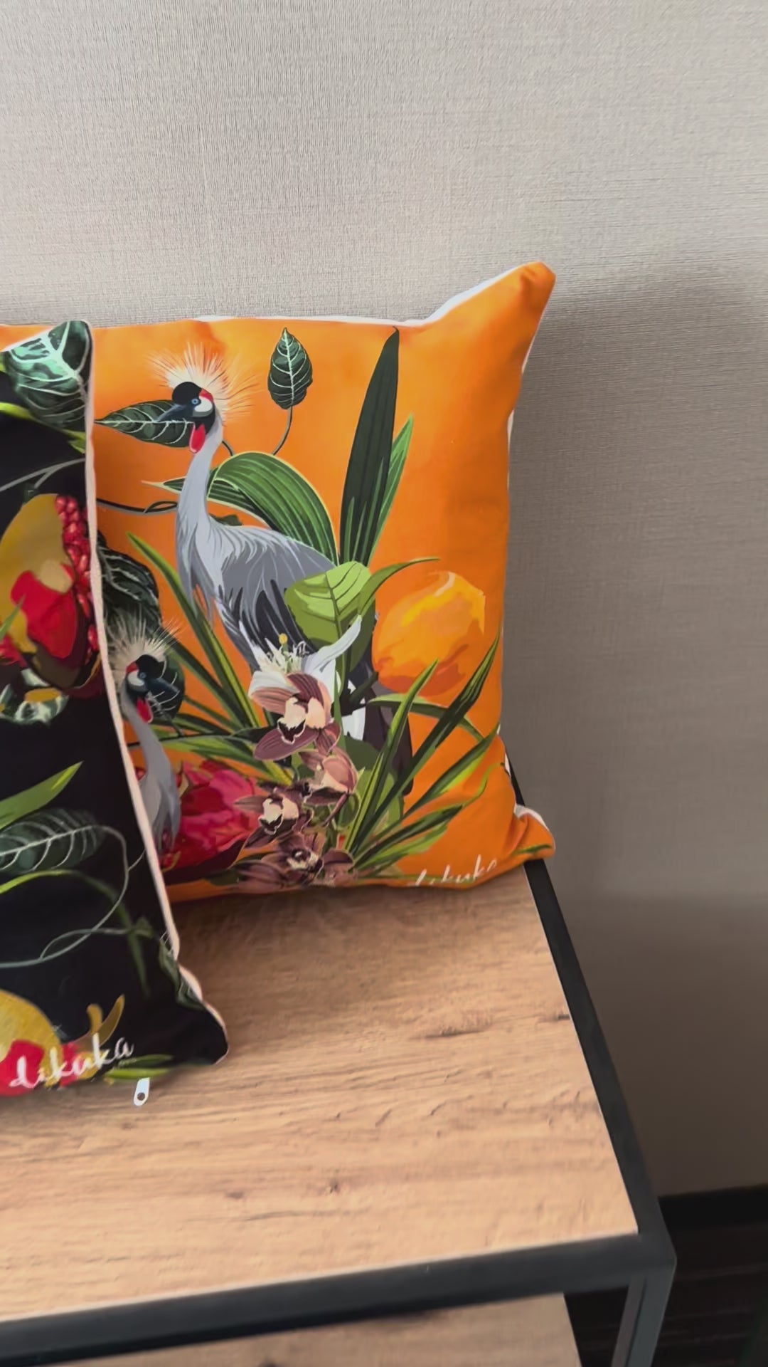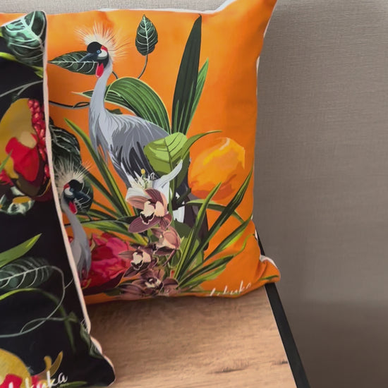 2'li Set Tropikal Desenli Orkide ve Egzotik Kuş 43x43 Yastık Kılıfı