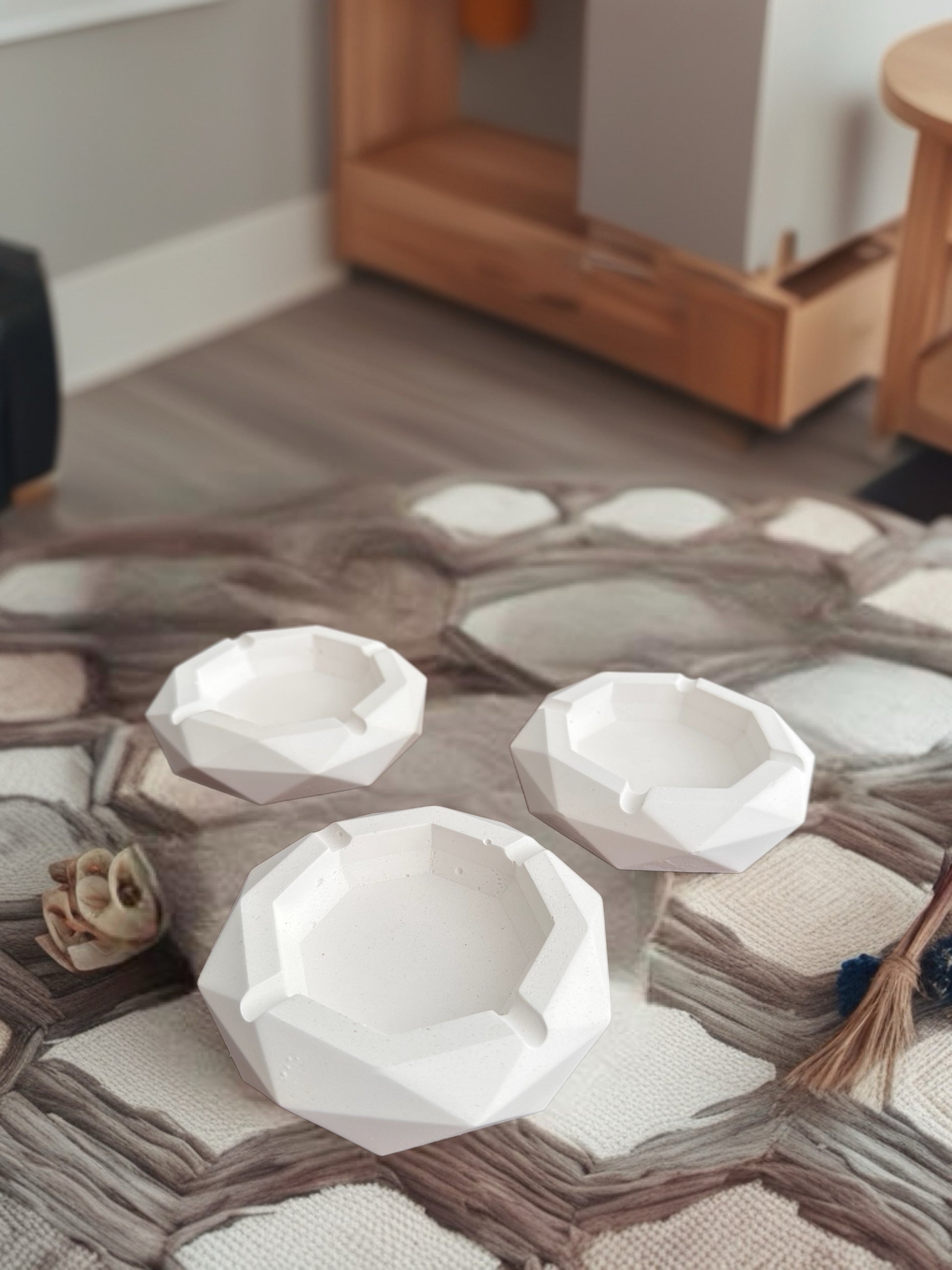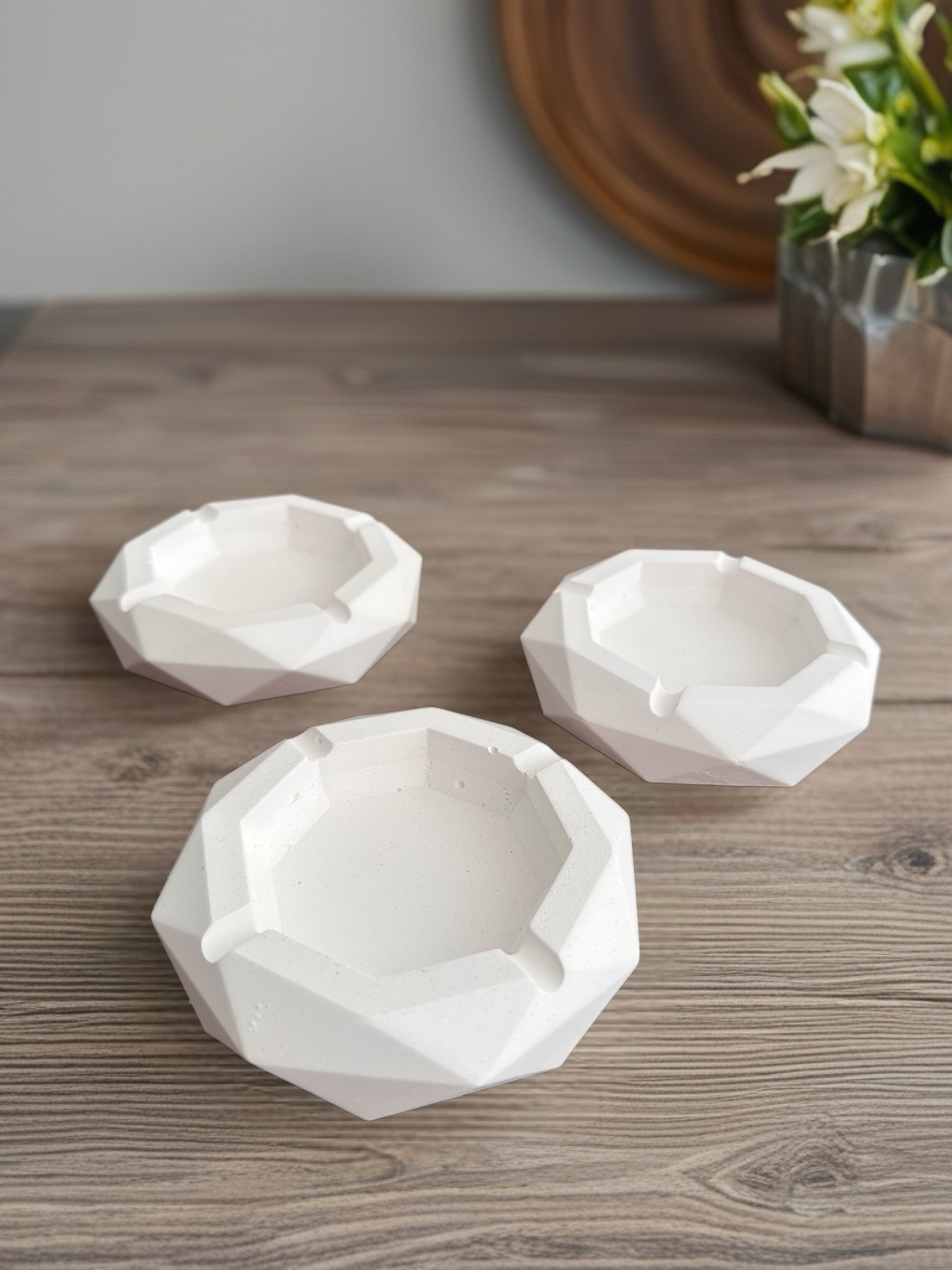 Şık ve modern tasarımıyla dikkat çeken Kristal Beton Küllük Seti, %100 el yapımıdır. Taş tozu içerikli özel beton karışımıyla üretilmiştir. Kristal formlu keskin hatları, klasik küllüklerden farklı olarak dekoratif bir obje havası katar.