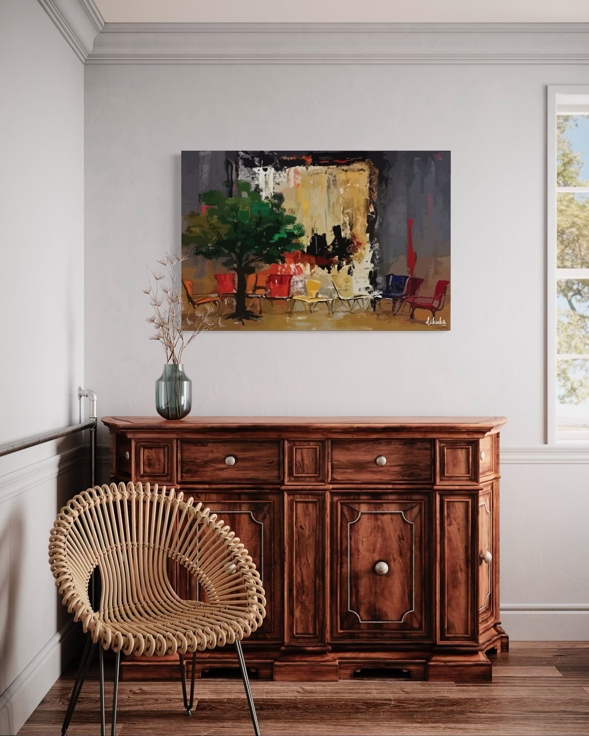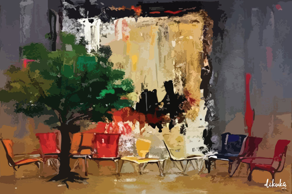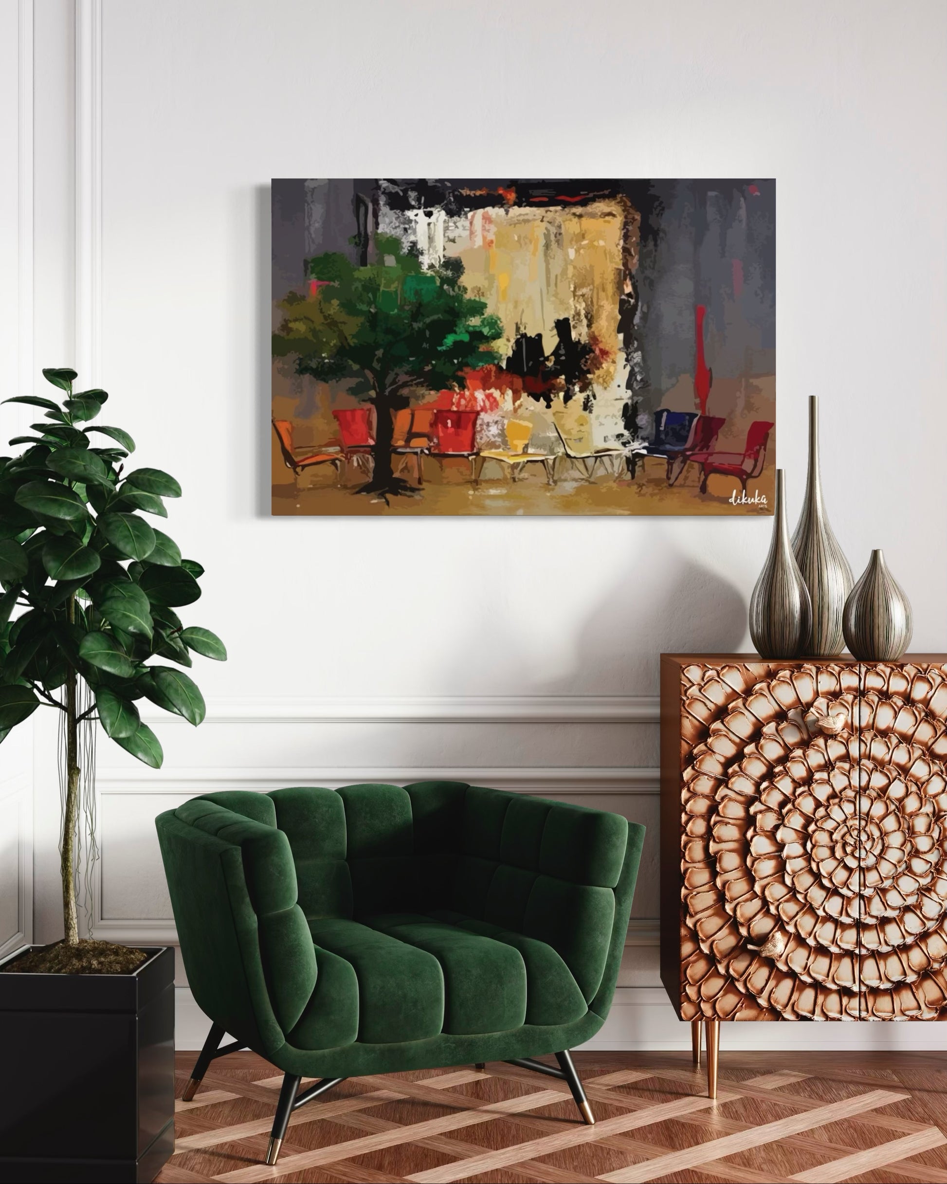 Yıllar boyunca sevgiyle büyütülen bir ağaç, yaşamın sürekliliğini simgelerken, altında kalan boş sandalyeler geçmişte orada olanların sessiz tanığıdır. Her bir sandalye bir fikir, bir ses, bir hikâyeyi temsil eder…