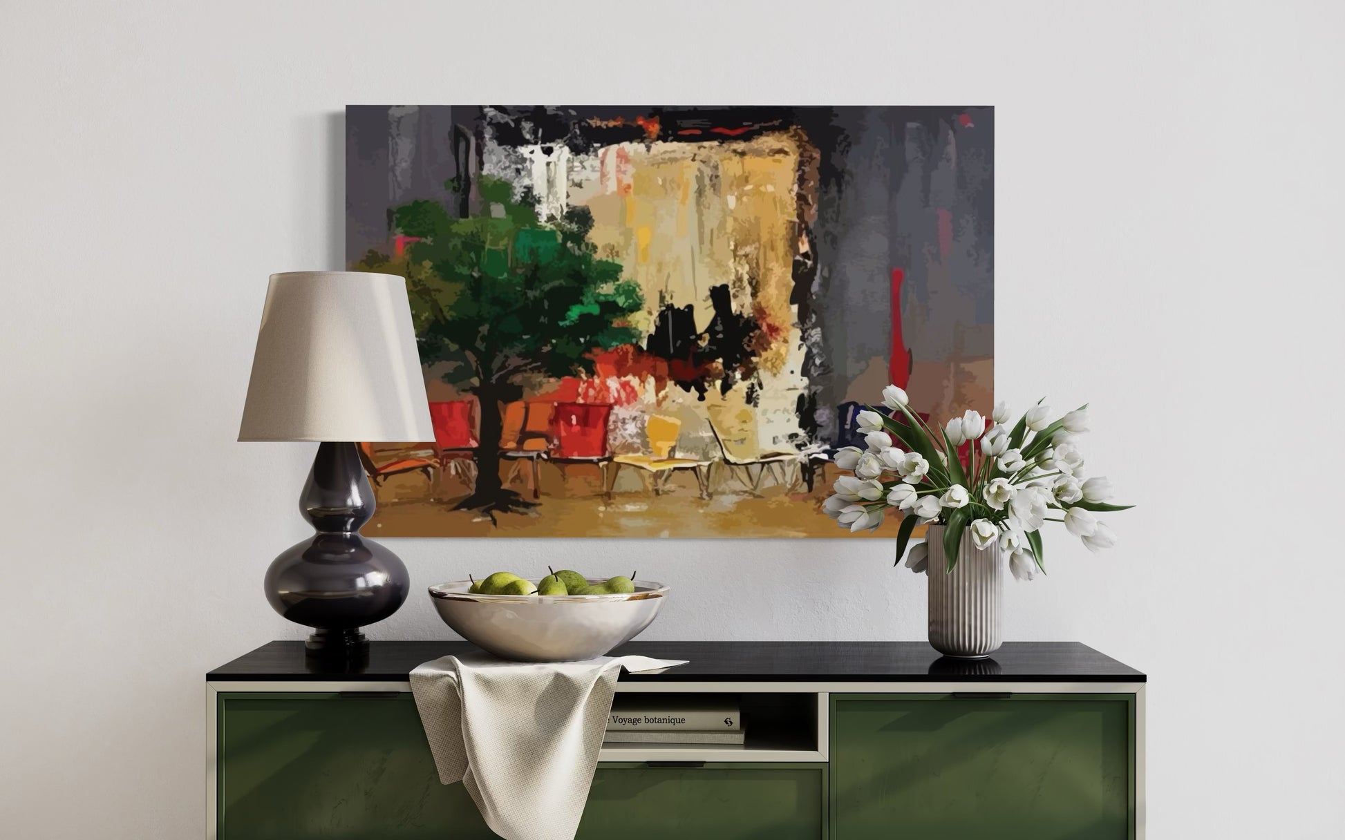 Ürettiğimiz her sanat eseri, 220 gramlık %100 polyester tekstil kanvas üzerine, zengin dokulu ve galeri kalitesinde baskıyla hayat bulur.