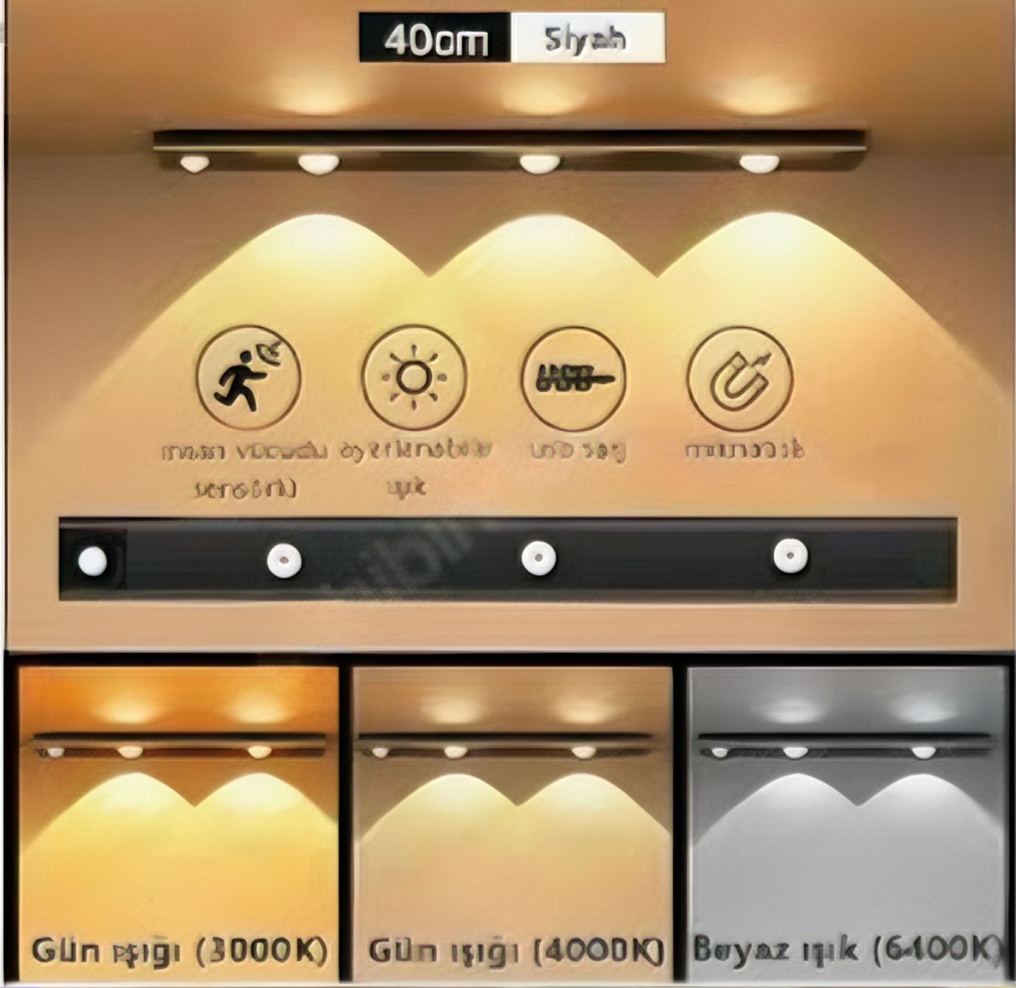 Cata CT-2464 40cm Bella Slim Kabinet Armatürü Şarjlı Sensörlü 3200K 4000K 6500K
