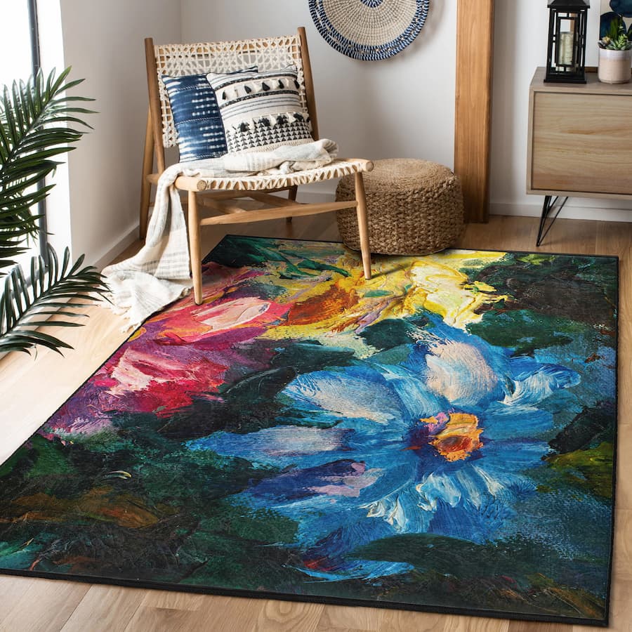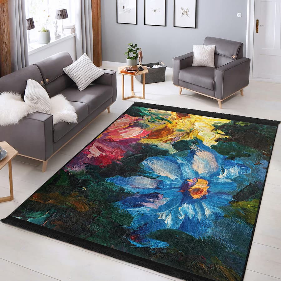 Gece Çiçeği – Sanatsal Çiçek Desenli Halı – Renkli Halı Koleksiyonu