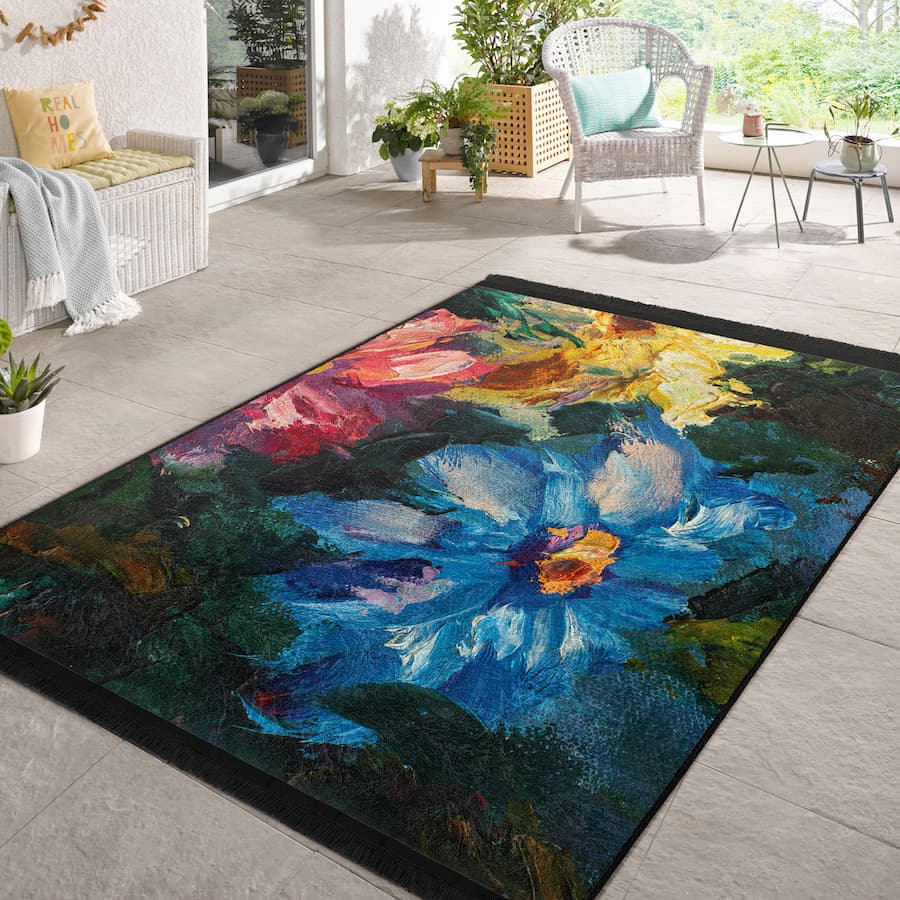 “Gece Çiçeği ” Kaymaz Taban Yıkanabilir Dikdörtgen, Kare Halı