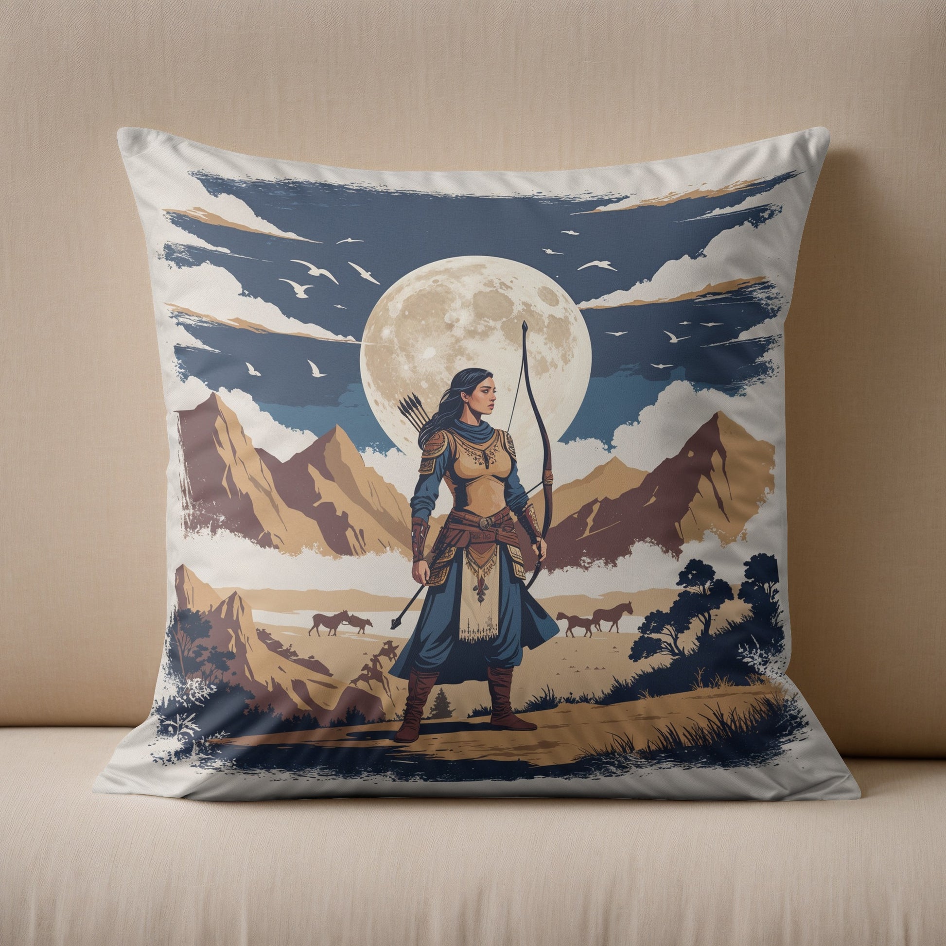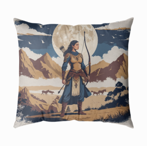 “Bozkırın Kızı” – Türk Savaşçı Kadın Temalı Yastık Baskı Tasarımı (43x43 cm)
