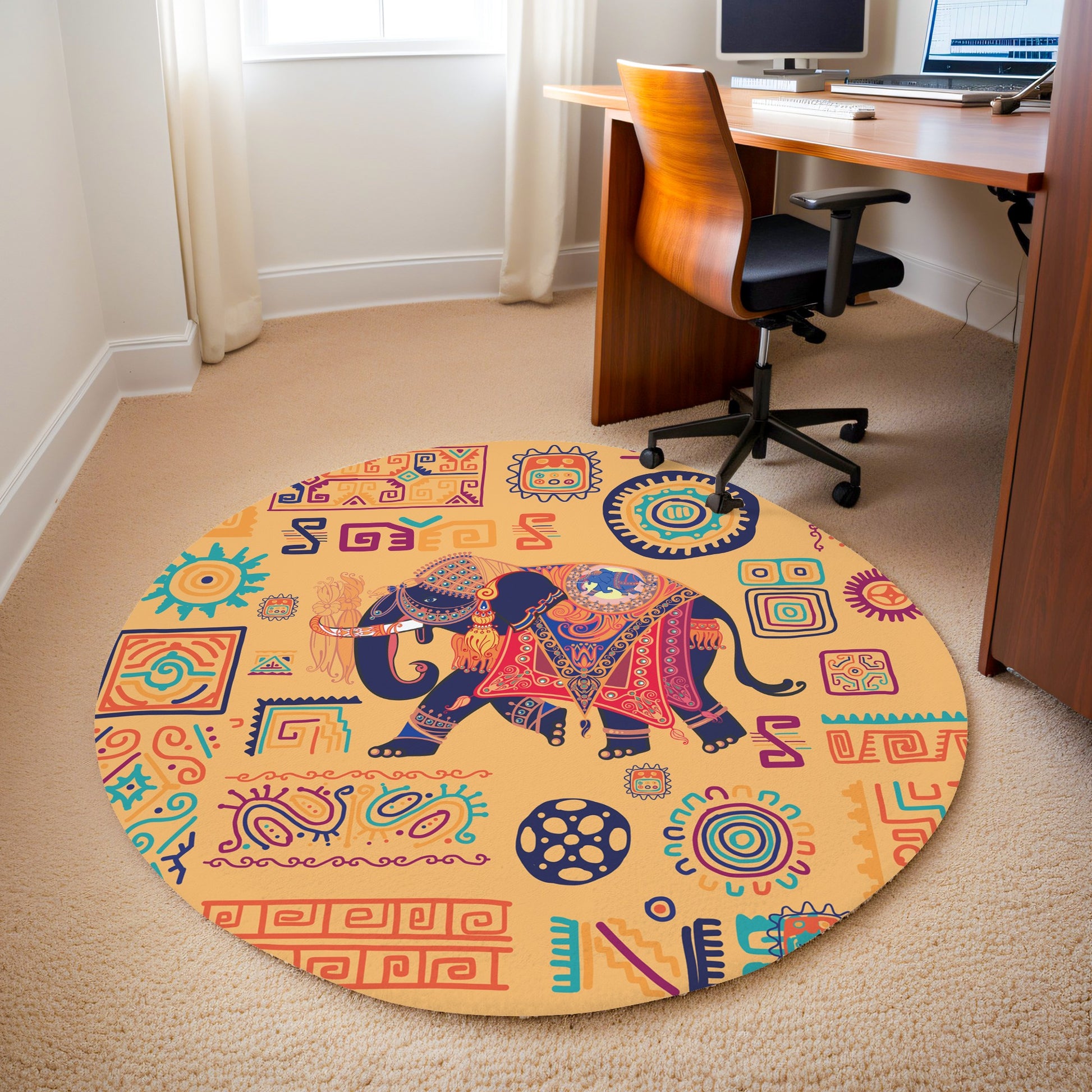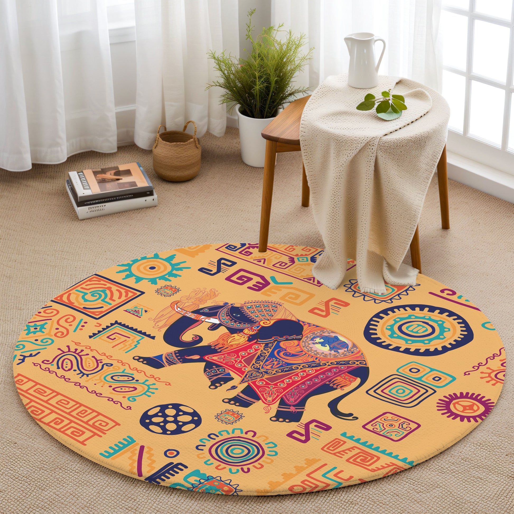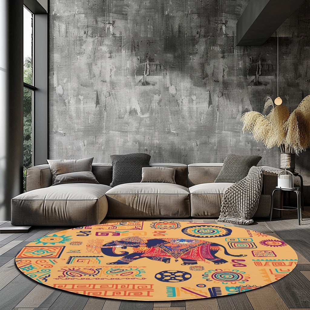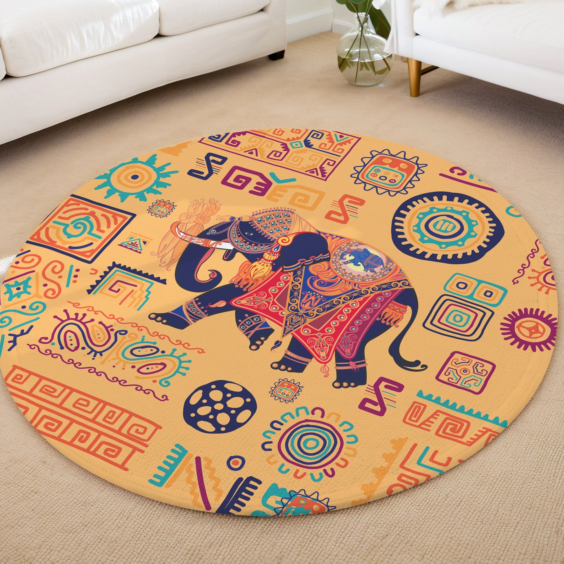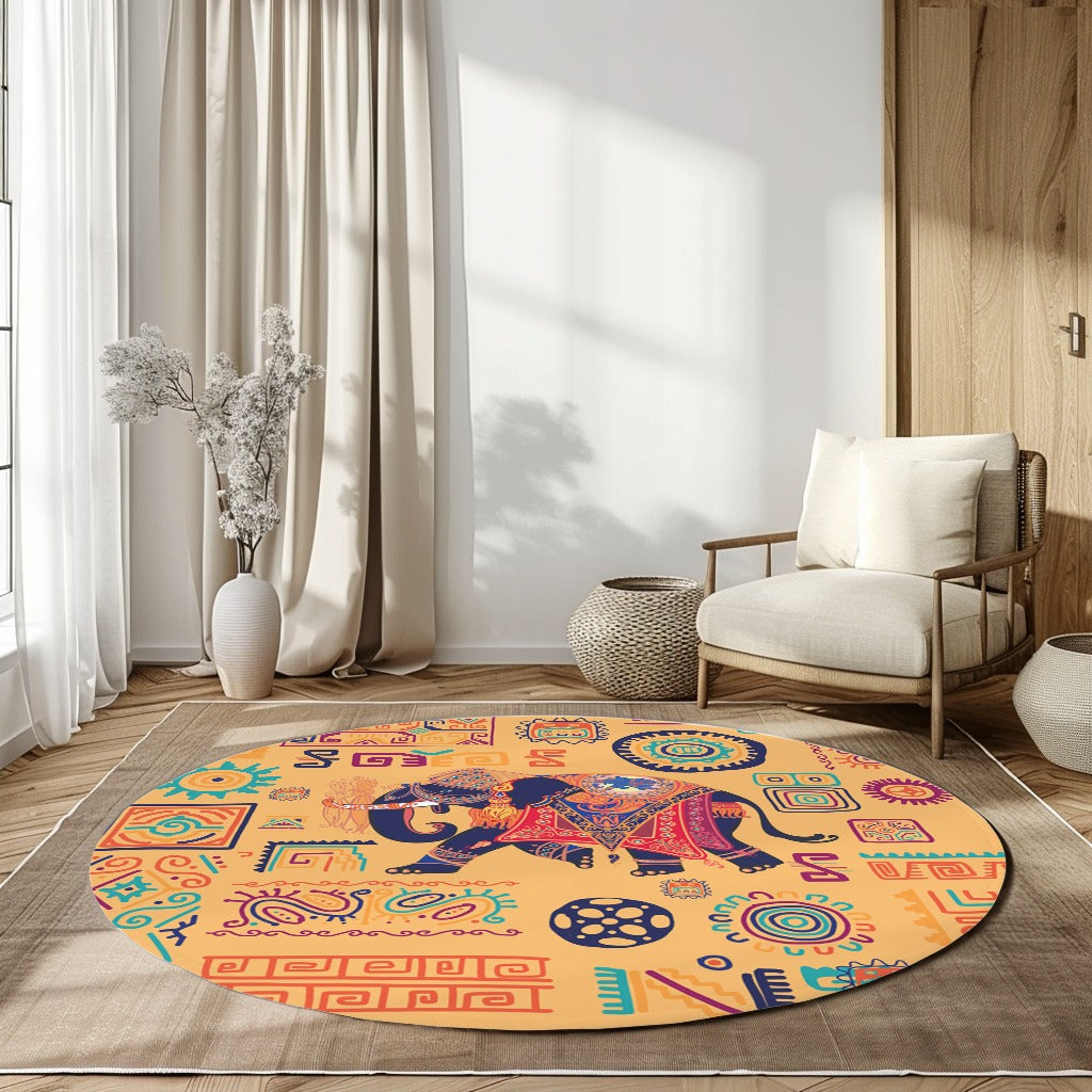 Hindistan Fili 2 Kaymaz Taban Yıkanabilir Yuvarlak Halı