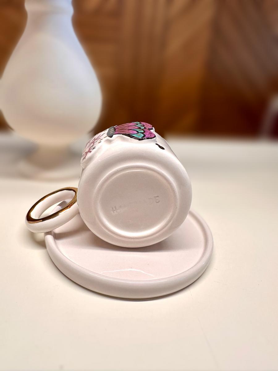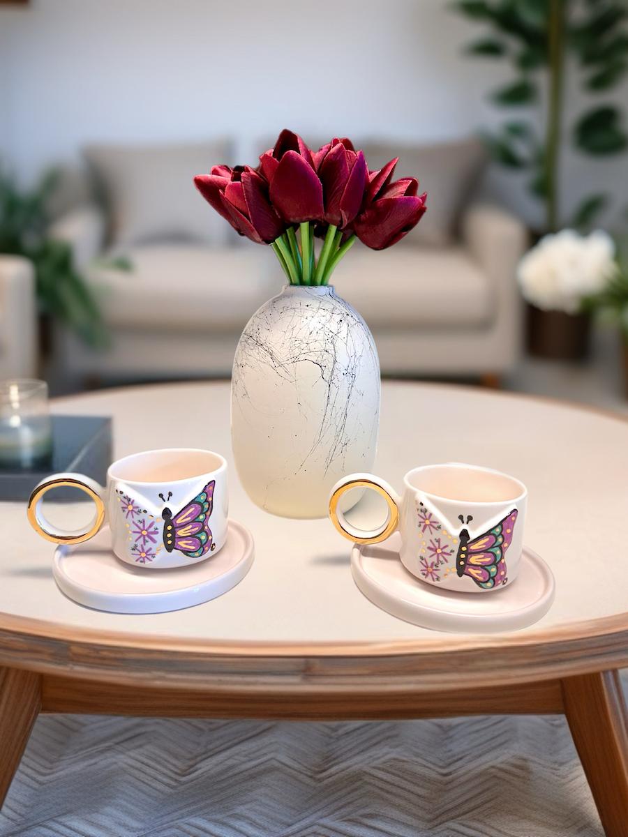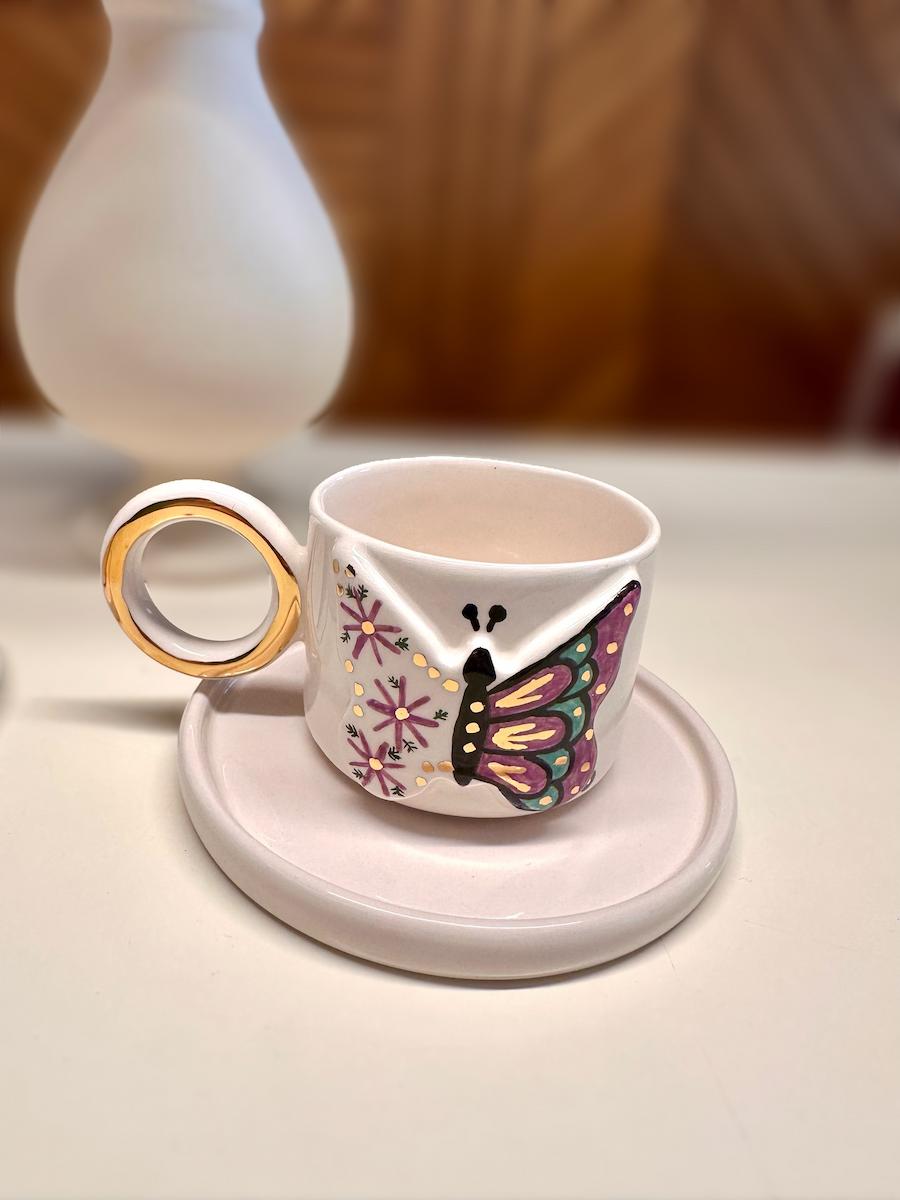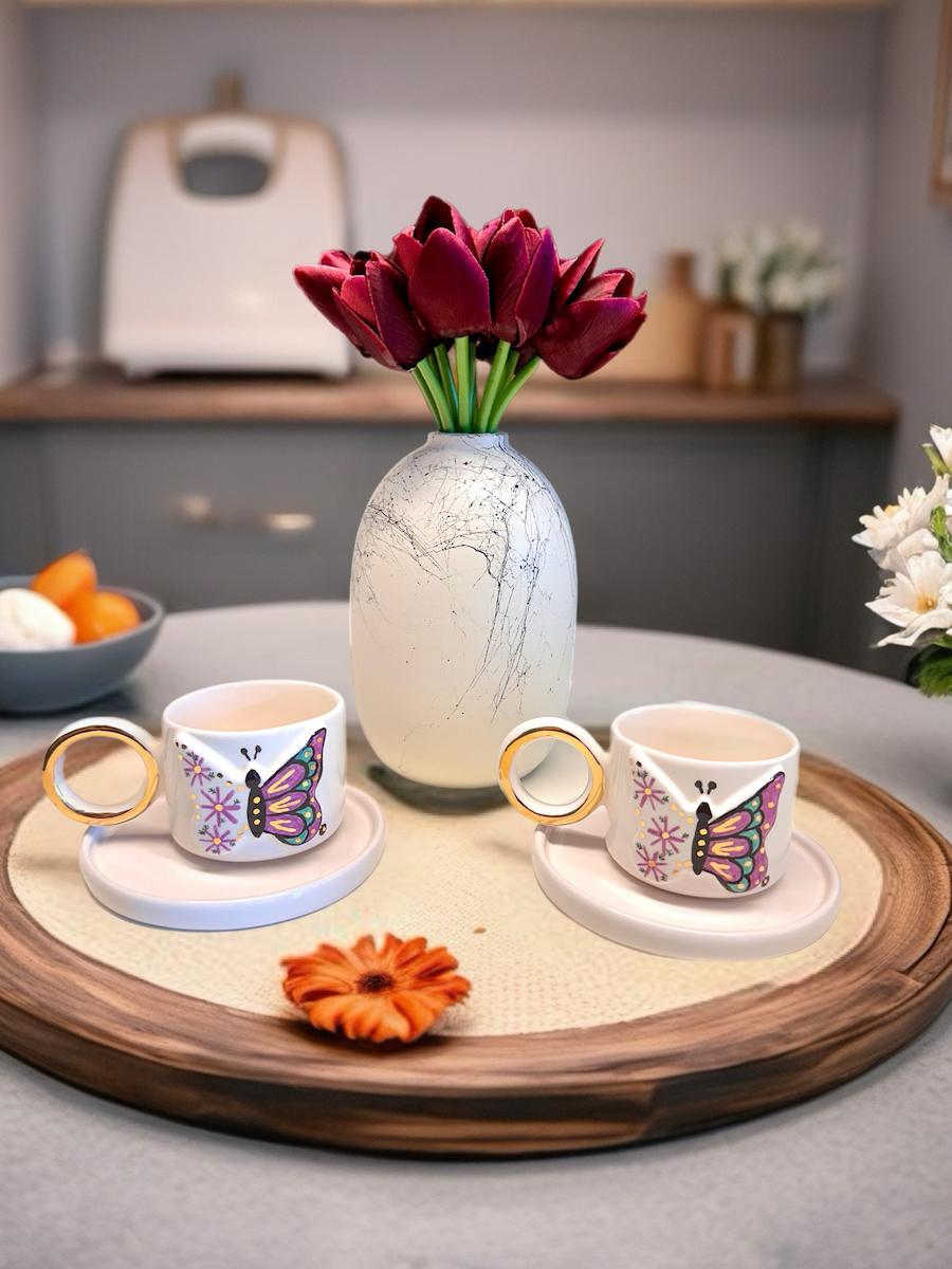 Kanatlarda Umut – El Yapımı Kelebek Desenli Türk Kahvesi Fincanı