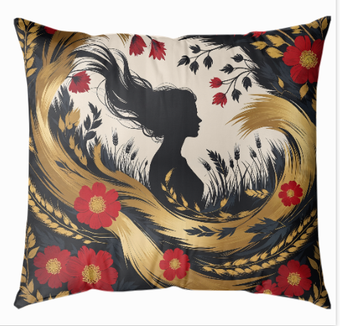 Khokhloma Ruhu: Kadın Silüetli Rus Folk Yastık Kılıfı 43x43 cm