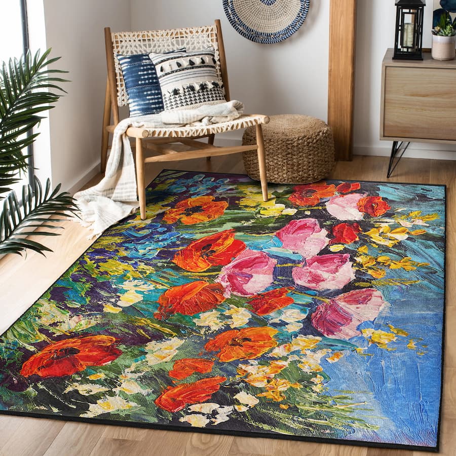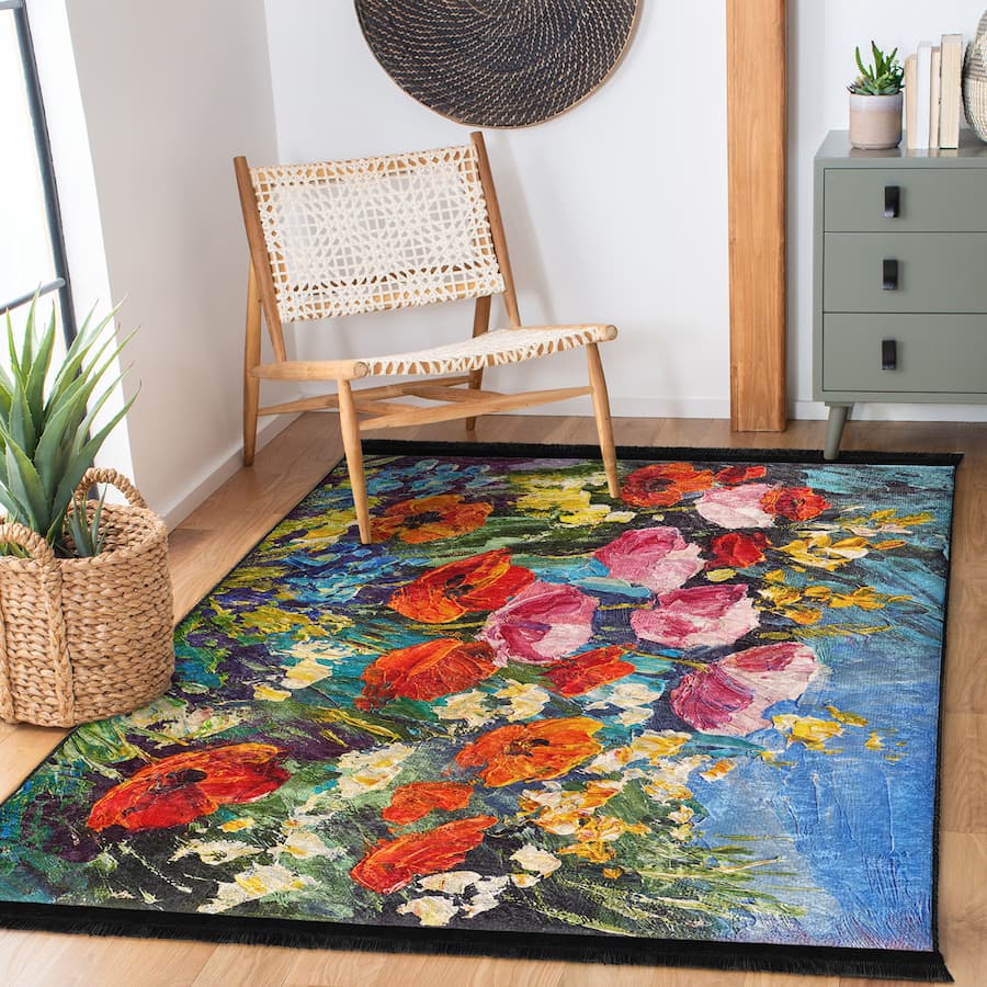 “Kır Çiçekleri ” Kaymaz Taban Yıkanabilir Dikdörtgen, Kare Halı