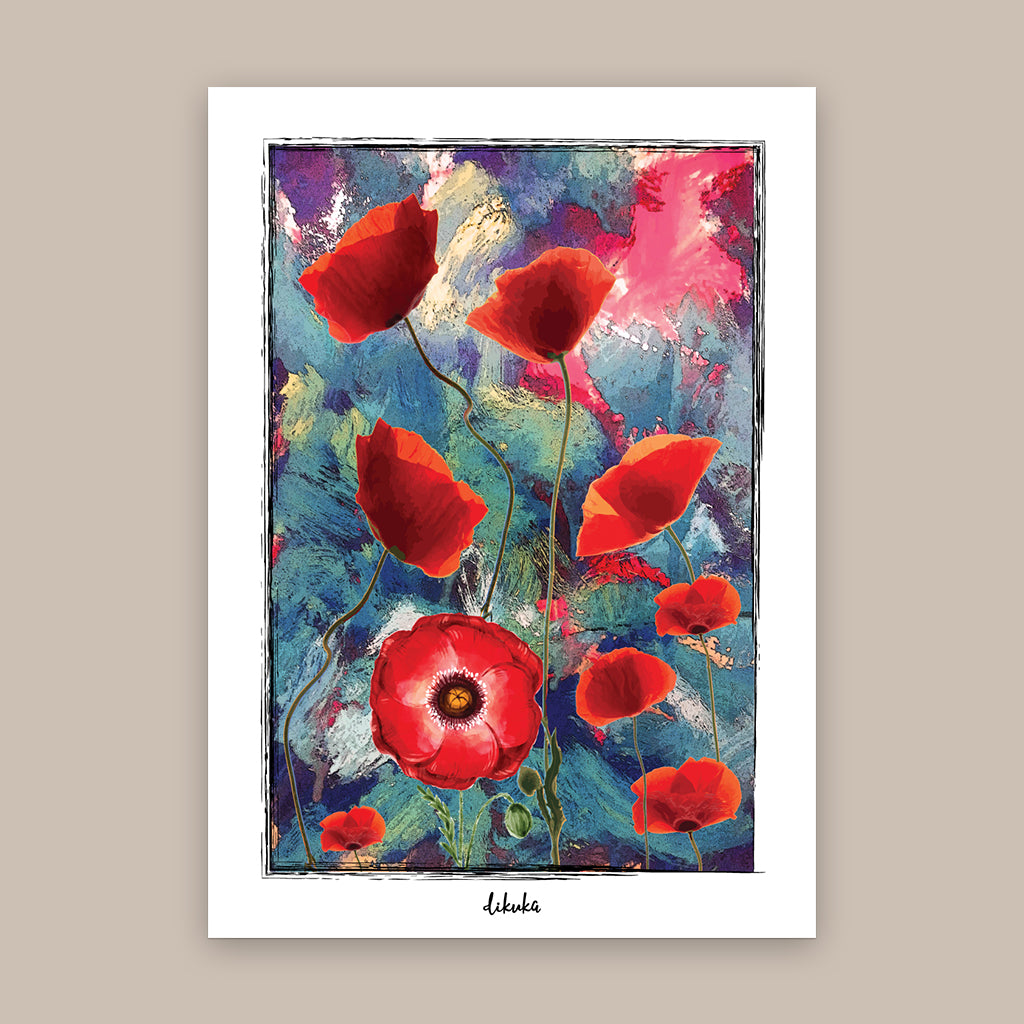 Kırmızı Gelincikler Dijital Kanvas Tablo – Zarif ve Modern Duvar Dekoru