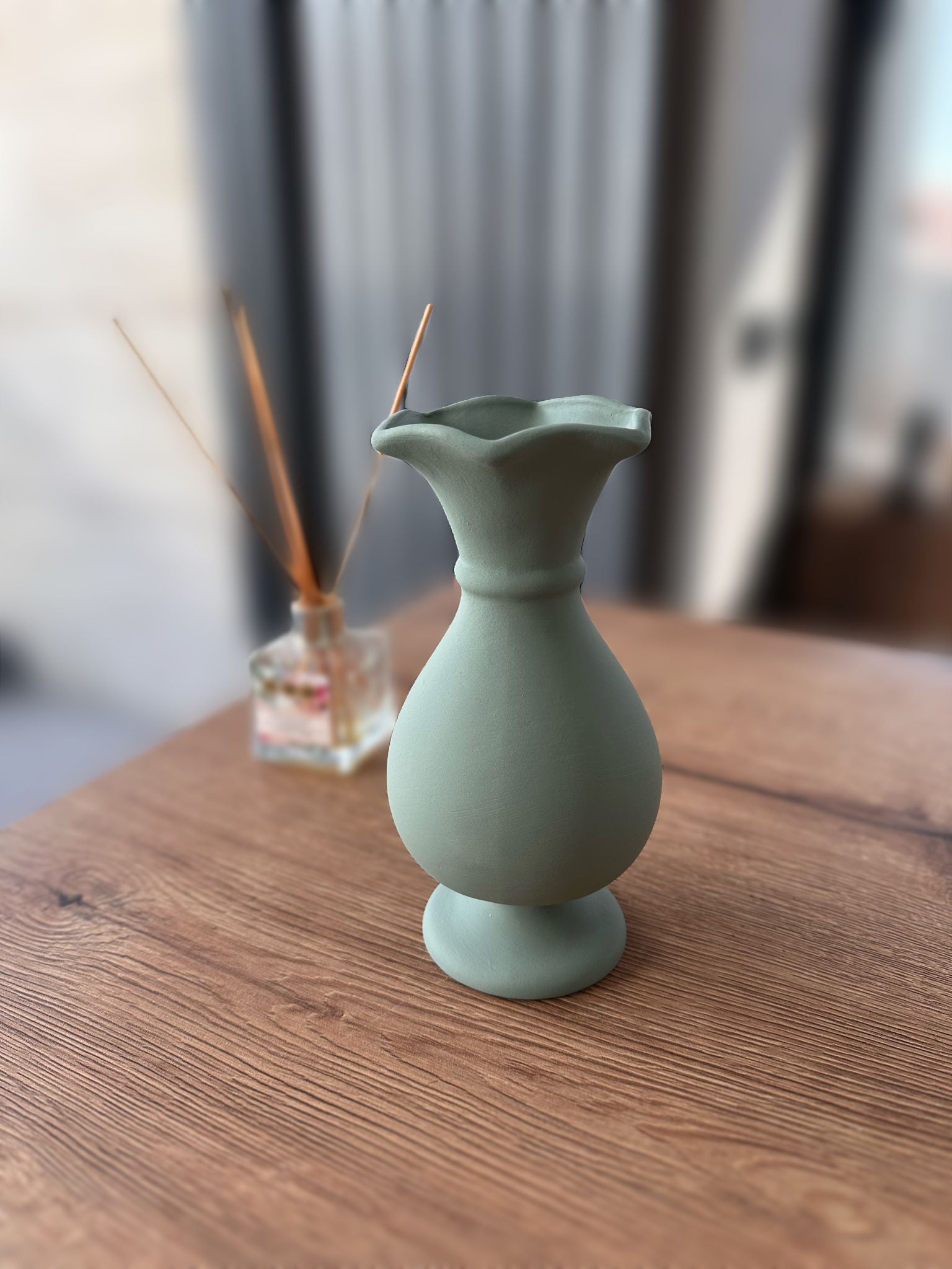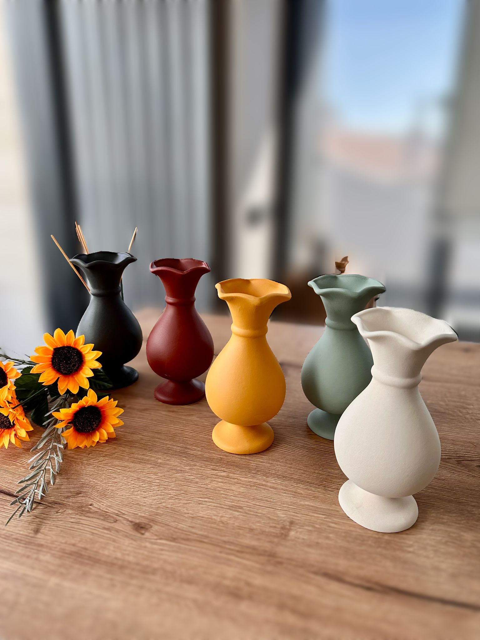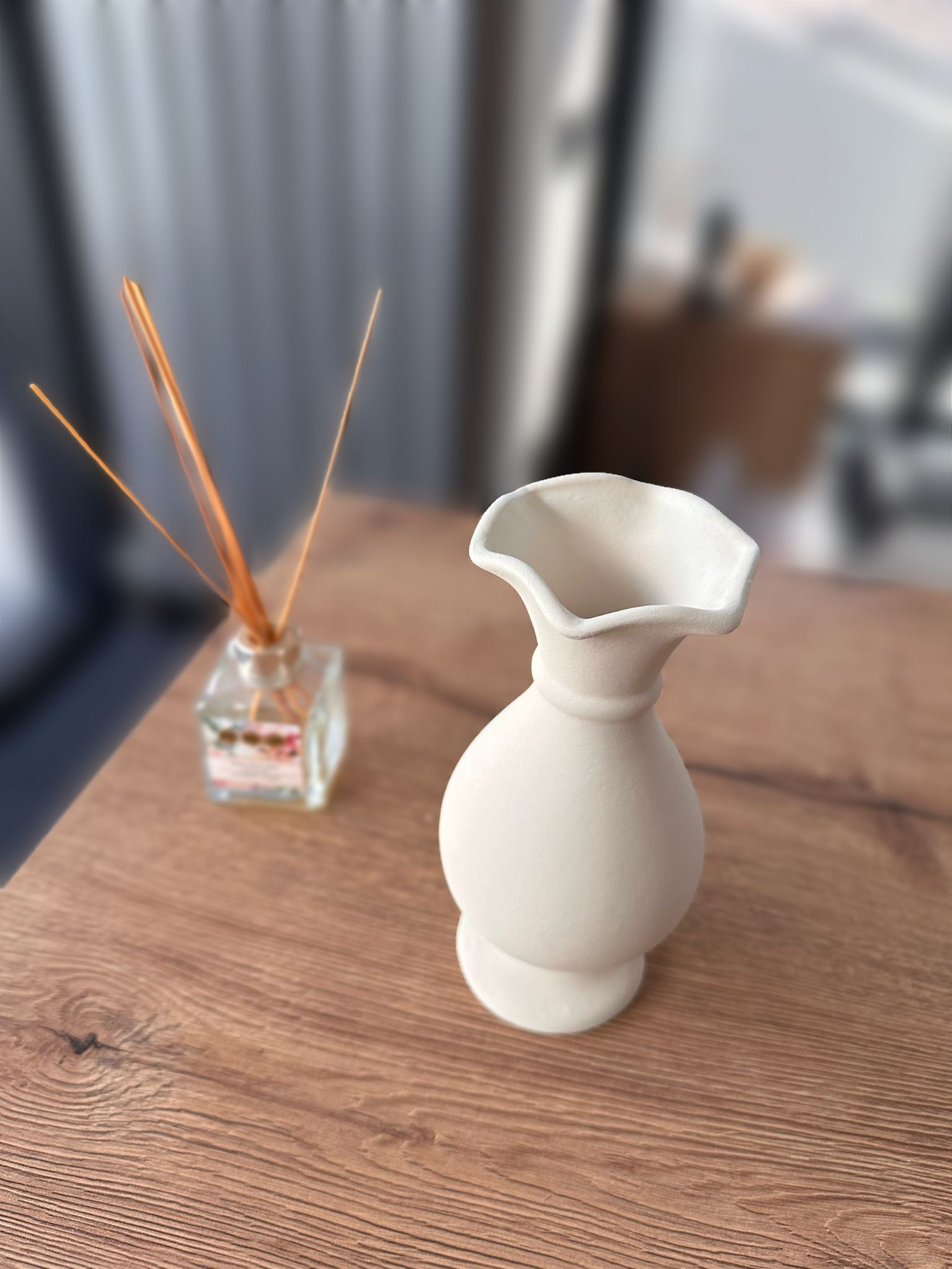 Kıvrım Seramik Vazo, zarif hatları ve doğal dokusuyla yaşam alanınıza sade bir şıklık katar. Dalgalı ağız kısmı sayesinde kuru çiçek veya dallarla kullanıldığında modern ve estetik bir duruş sağlar.