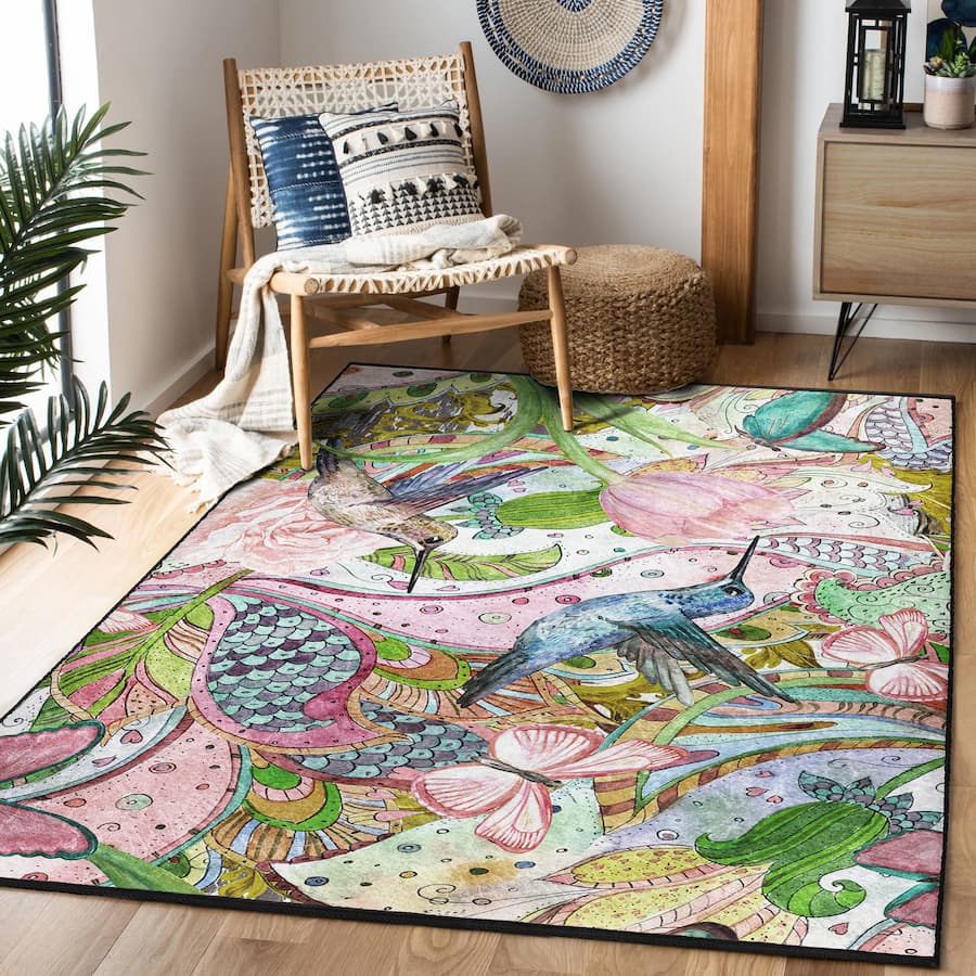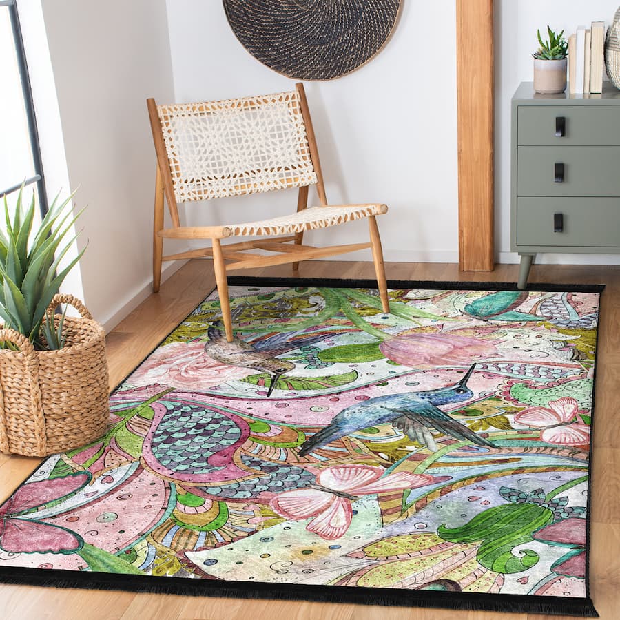 “Kuş Masalı ” Kaymaz Taban Yıkanabilir Dikdörtgen, Kare Halı