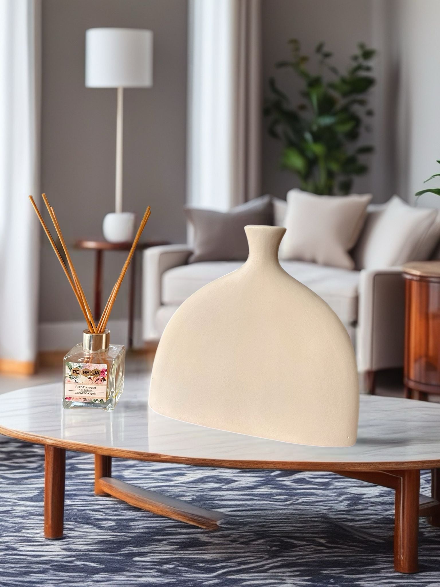 Modern ve zamansız hatlara sahip Mira Seramik Vazo, kubbe formu ve sıcak tonlarıyla yaşam alanlarınıza enerji katar. Tek başına dekoratif obje olarak kullanılabilir, kuru dallar ve yapay çiçeklerle tamamlanarak salon, oturma odası ve ofis dekorasyonuna sıcak bir dokunuş sağlar. Minimal tasarımı sayesinde modern dekorasyon stilleriyle kolayca uyum sağlar.