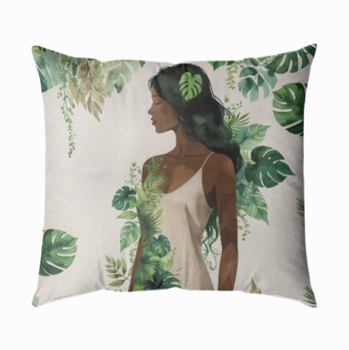 “Ormanın Ruhuyla” – Amazon Temalı Kadın Silueti 43x43 Yastık Kılıfı