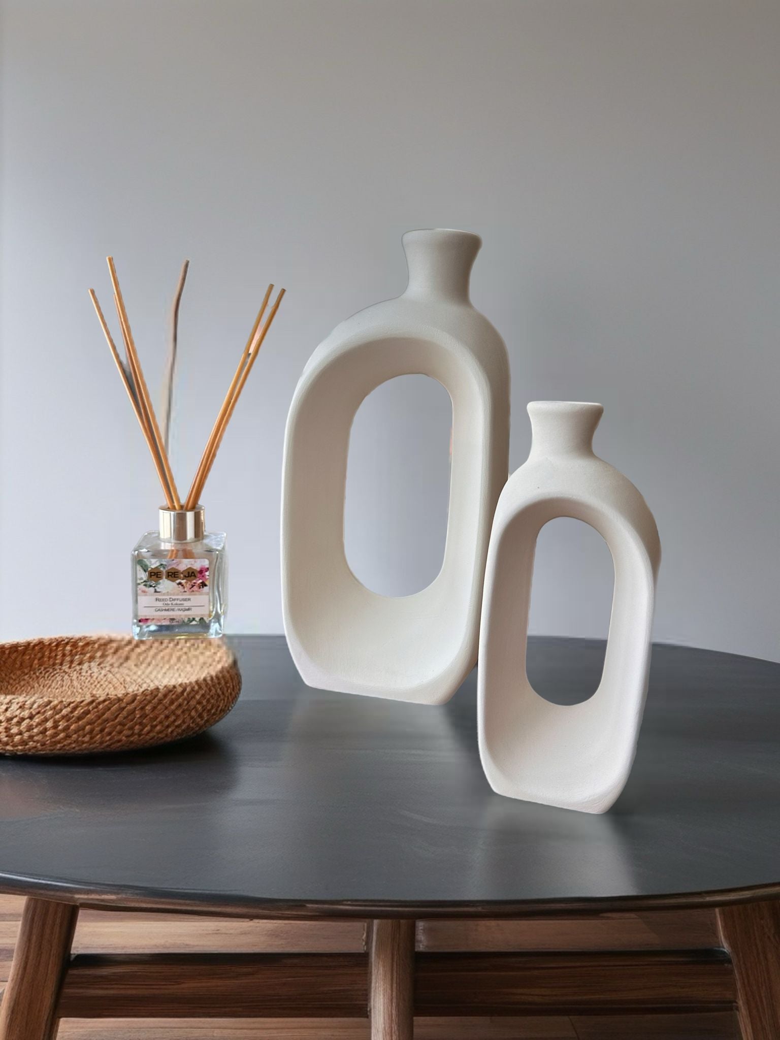 Oval Form Minimal Seramik Vazo 2 li set