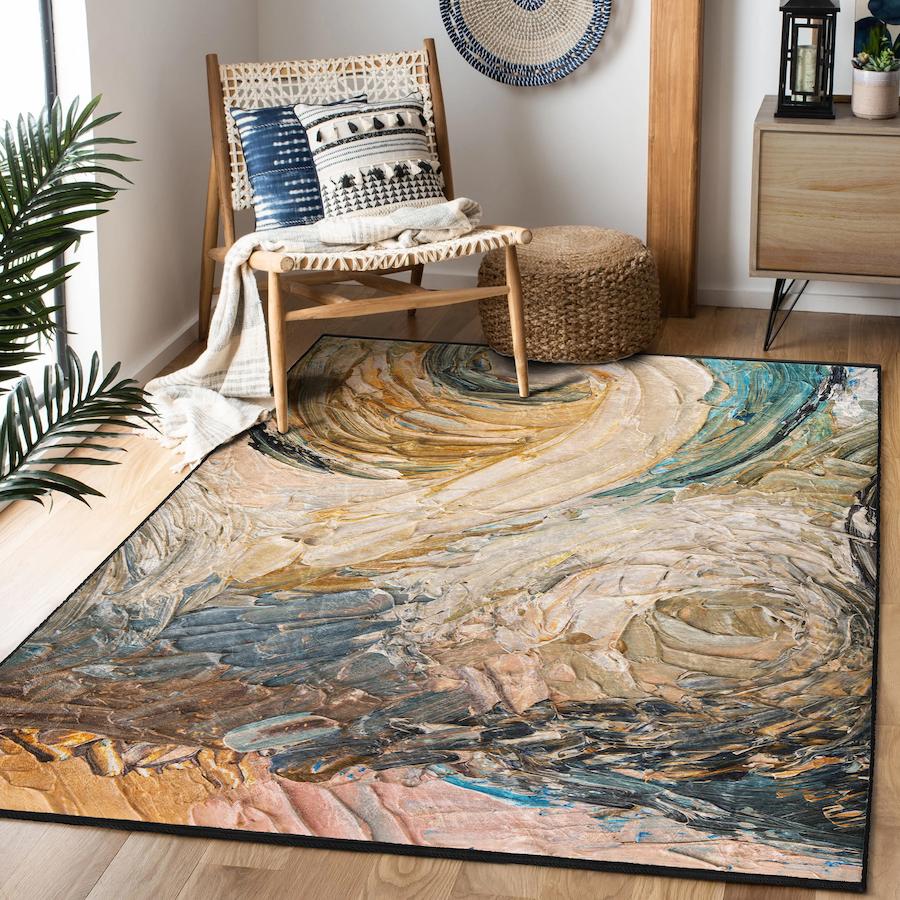 Doğanın tüm sakinliğini ve zarafetini evinize taşıyan Toprak Dansı halı, fırça darbeleriyle oluşturulmuş soyut desenleri ve pastel tonlarıyla göz alıcı bir şıklık sunuyor. Bej, toprak, açık mavi ve krem tonlarının uyumu, halıya dingin ve zarif bir hava katarken; bu özel tasarım modern, bohem ya da rustik dekorasyonlarla kusursuz uyum sağlar. Evinizin zeminine huzuru ve doğallığı getirir.