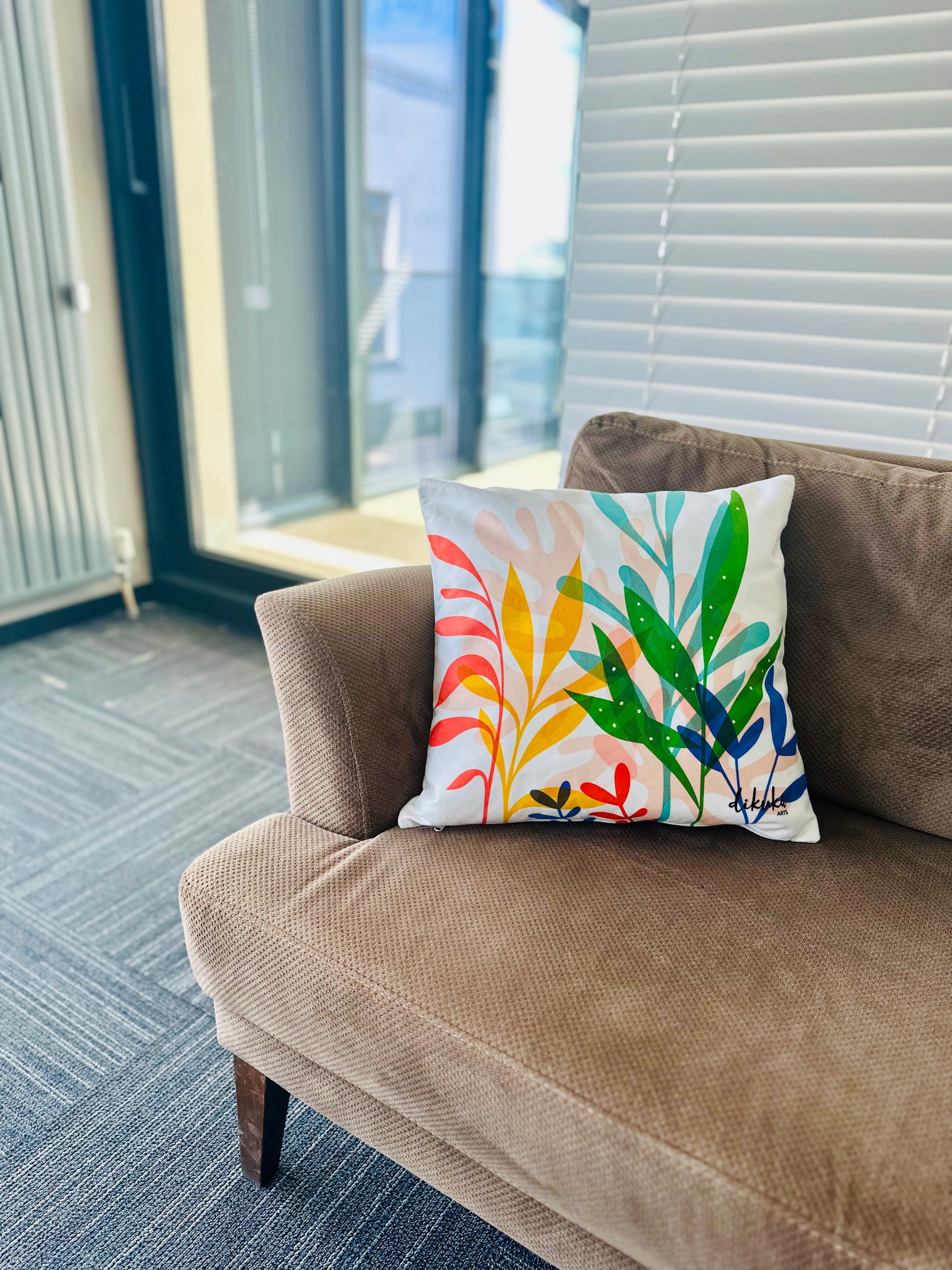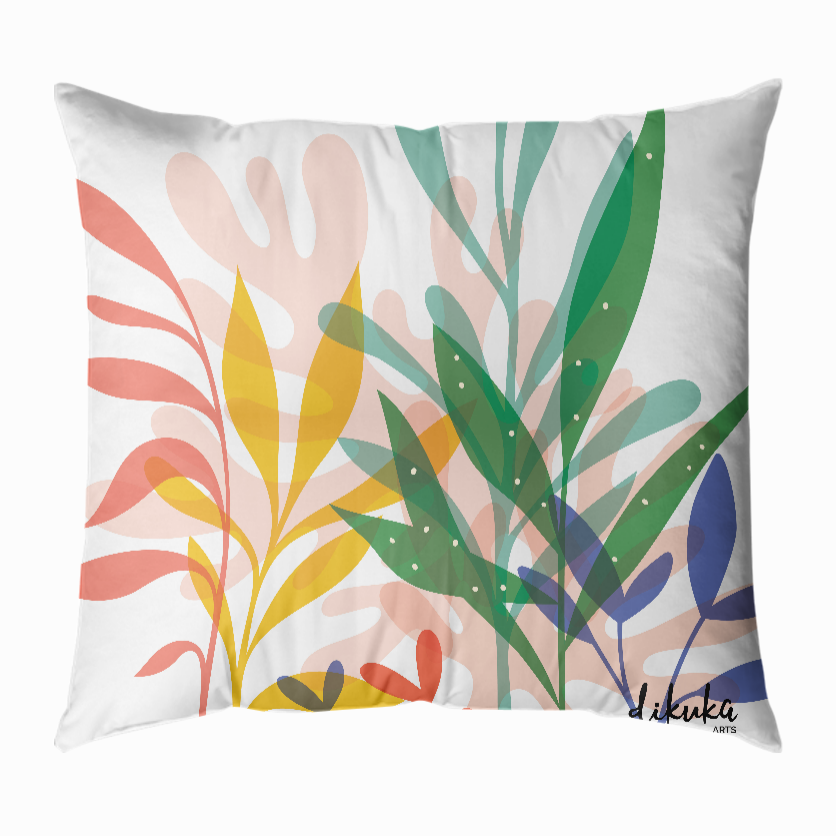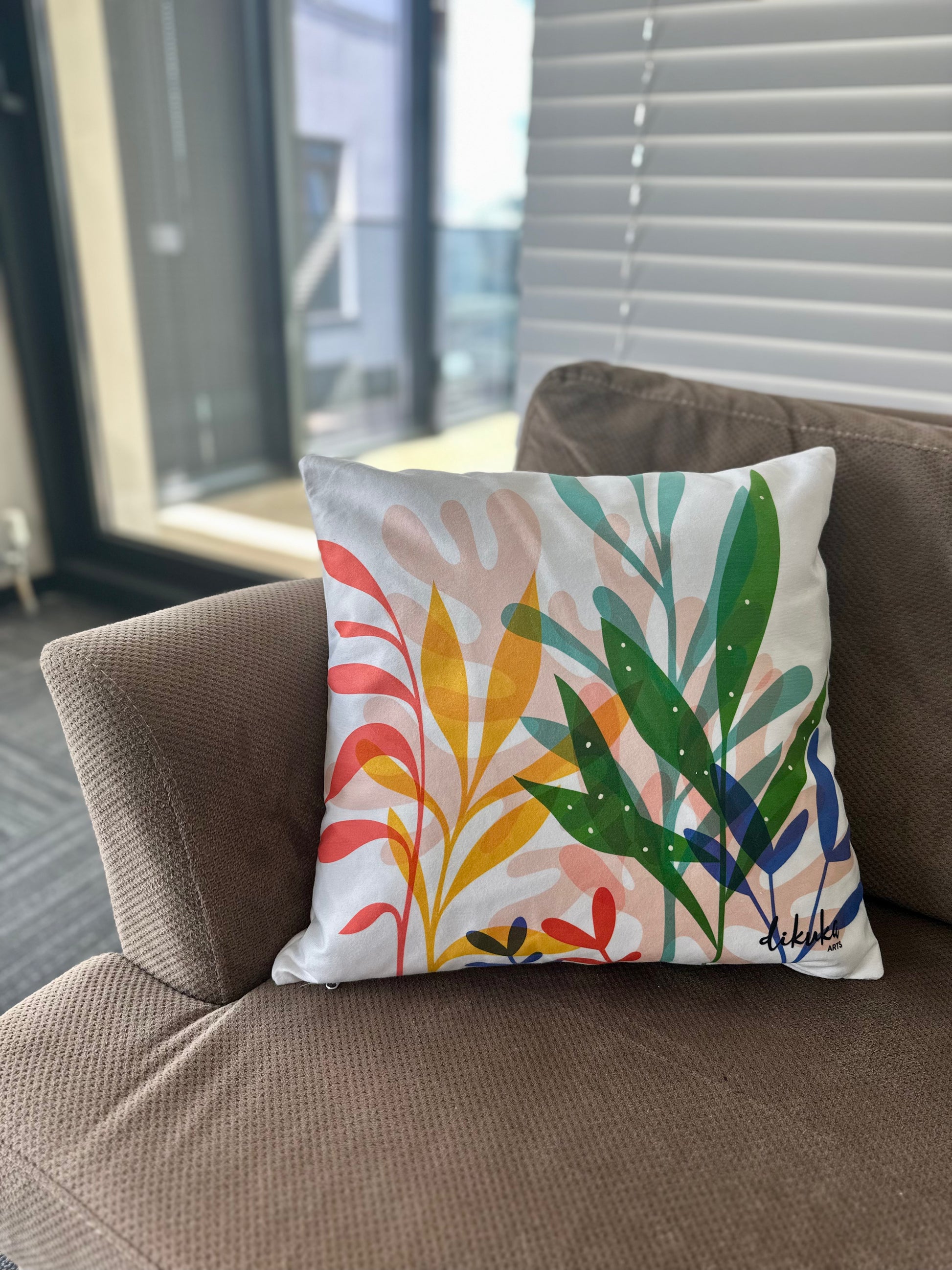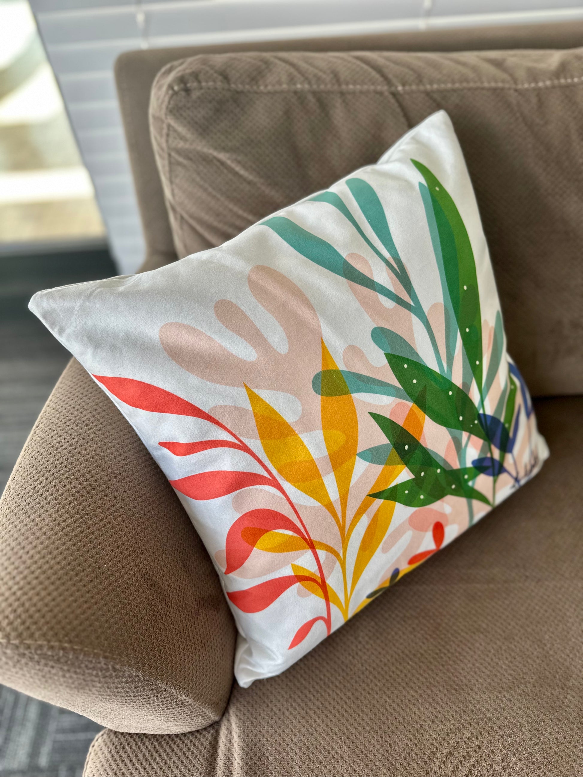 Tropikal Renkli Yapraklar 43x43 Yastık Kılıfı