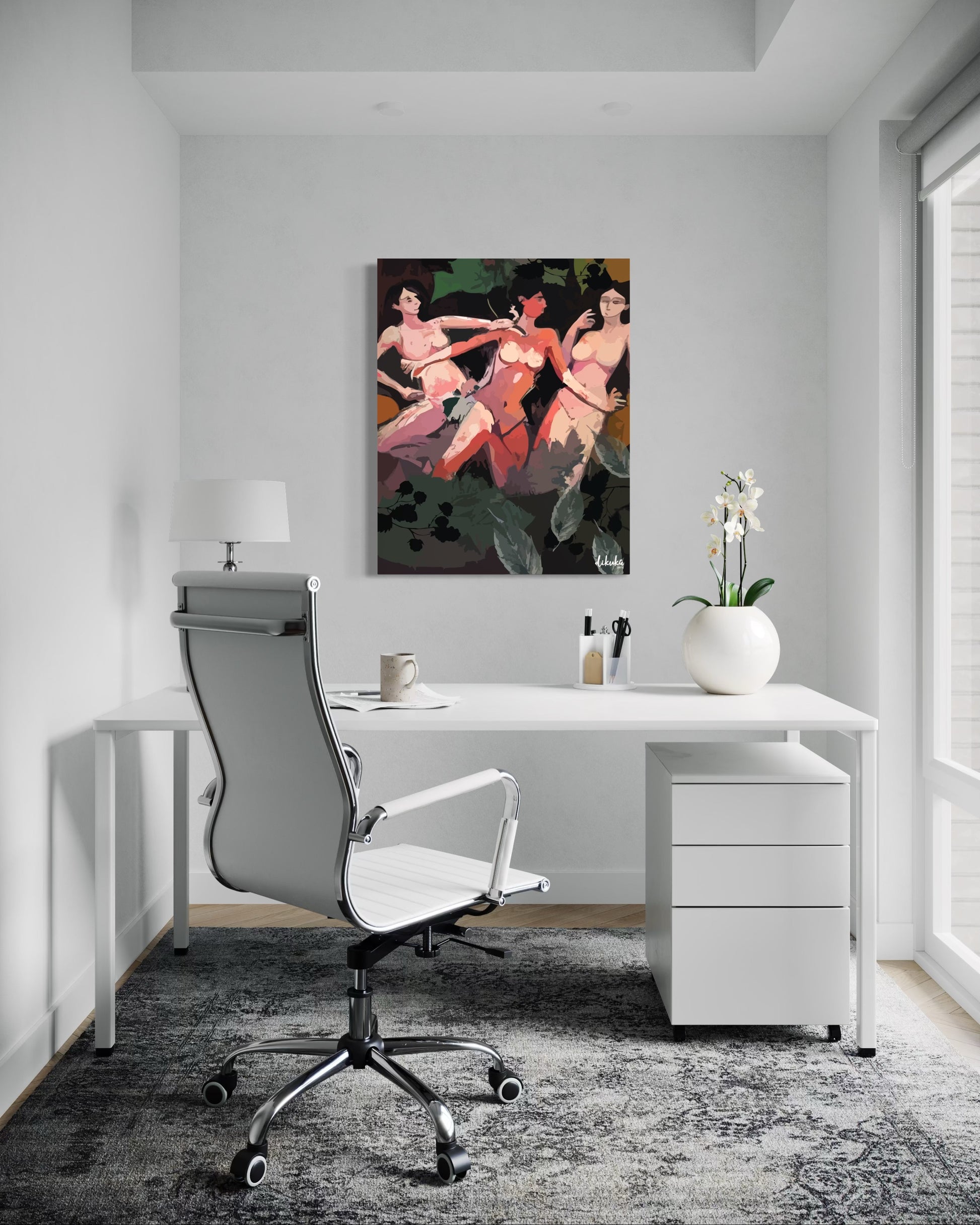 Ortadaki kadın, şimdiki anın farkındalığını yansıtır. Kararsızlıklarla, tutkularla, kırılgan ama dirençli bir varoluşu temsil eder.